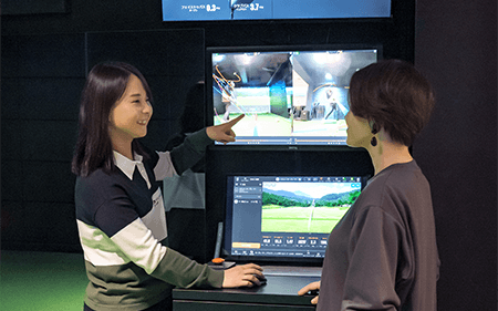 私が大切にしているのは、生徒さん一人ひとりのタイプや目的に応じた最適なレッスンを提供することです。たとえば、男性の生徒さんは「データ重視」の方が多く、弾道測定器に表示される入射角やスピン量、クラブスピードなどの数値をもとに、理論的に理解しようとされます。中には私以上にデータに詳しい方もいらっしゃって、そうした方には数値に基づいた説明がとても効果的です。