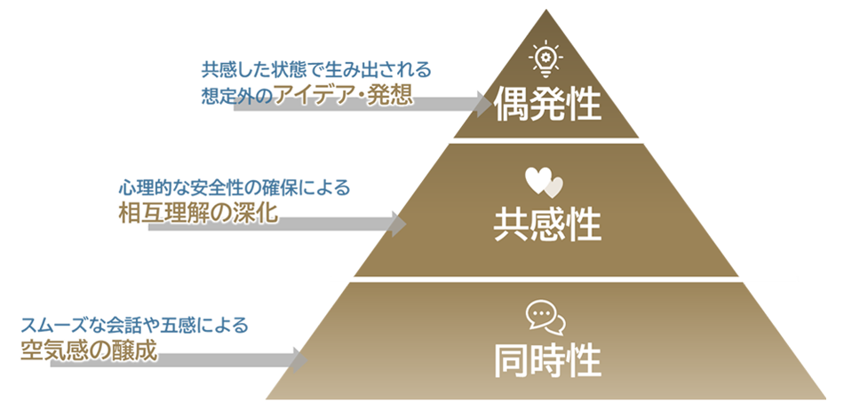 そこで私たちは、出社の意義を3つの要素に整理しました。