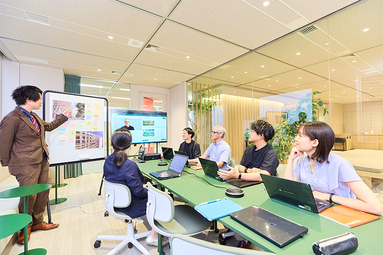 名称の決定も同様です。このオフィスを単なる本社拠点の共有スペースにとどめるのではなく、全国の拠点をつなぐ交流のハブにしたい、そうした思いから、全社員に向けて名称を募集しました。多くの社員が投票に参加し、そのうち約4割の票が本社以外から集まりました。