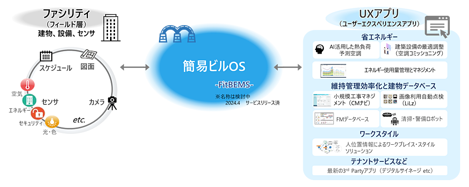 その中核を担うのが、簡易ビルOSである「FITBEMS」です。これは、データ連携に特化し、建物内の設備と遠隔からそれをコントロールするデジタルアプリケーションをつなぐ橋渡しの役割を担います。