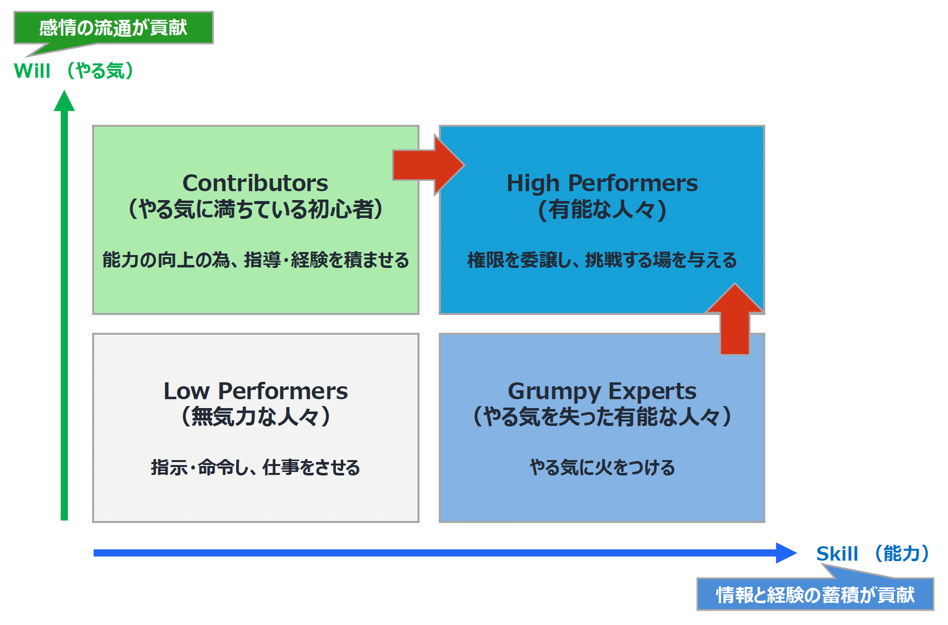 図1.やる気と能力に関する「Will/Skillマトリクス」