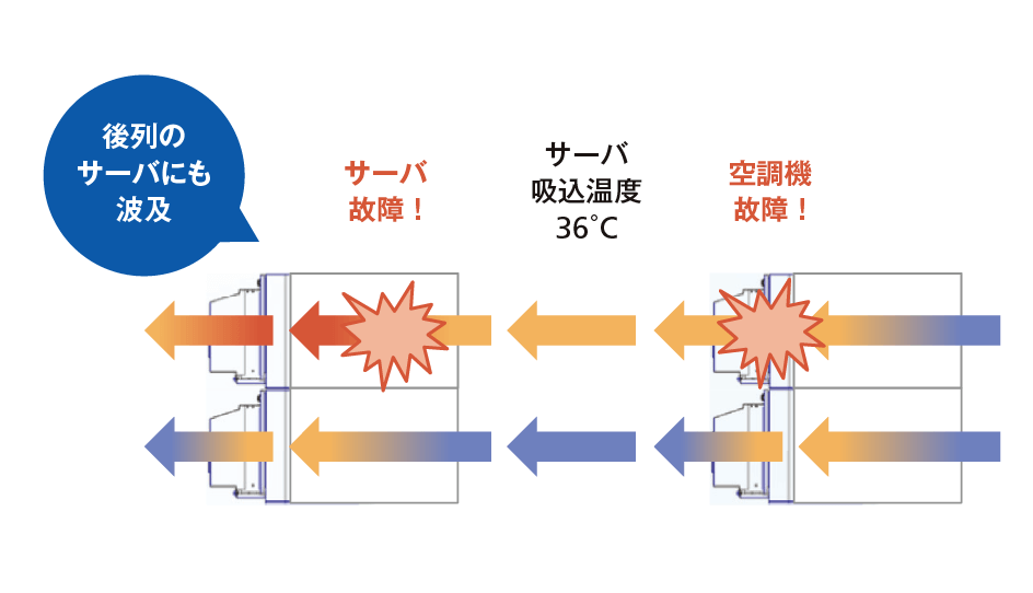 - 故障機と正常機の排気をミキシングすることで故障機の高温排気を冷却。
