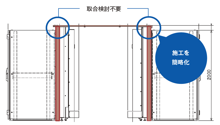 - リアドア型空調機を対向配置し、空調機の排気をミキシングアイルに集約。